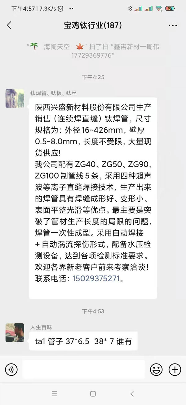 本消息來自寶雞(鈦行業微信群)請添加客服微信,邀請進群查看消息。