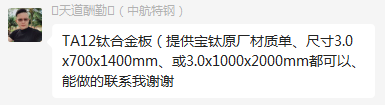TA12鈦合金板(提供寶鈦原廠材質單、尺寸3.0x700x1400mm、或3.0x1000x2000mm都可以、能做的聯系我謝謝