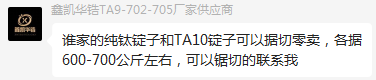 誰家的純鈦錠子和TA10錠子可以據切零賣,各據600-700公斤左右,可以鋸切的聯系我。