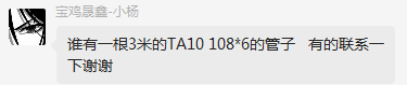 誰有一根3米的TA10 108*6的管子 有的聯(lián)系一下謝謝。