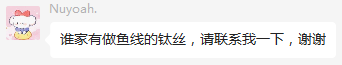 誰家有做魚線的鈦絲,請聯系我一下,謝謝