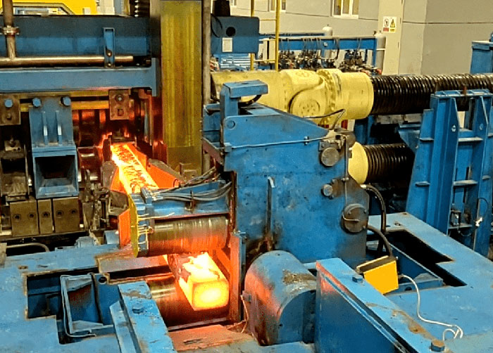 該裝備為中冶京誠瑞信長材自主創新開發的大型圓錠開坯機,首次應用在鈦行業,具有自動調整輥縫、自動軸向調整、監測軋制壓力、推床自動夾鋼、翻鋼等功能,實現了φ600~φ800mm鈦錠的自由開坯軋制。
