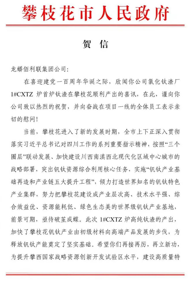 龍佰集團(tuán)50萬(wàn)噸攀西鈦精礦升級(jí)轉(zhuǎn)化氯化鈦渣創(chuàng)新工程是四川省重點(diǎn)產(chǎn)業(yè)化項(xiàng)目,于2019年2月正式開(kāi)工建設(shè),總投資20億元,從規(guī)劃建設(shè)到順利上料投運(yùn)試生產(chǎn),在集團(tuán)領(lǐng)導(dǎo)的大力指導(dǎo)下,經(jīng)過(guò)項(xiàng)目建設(shè)團(tuán)隊(duì)的精心組織和高效協(xié)調(diào),項(xiàng)目安全實(shí)現(xiàn)順利出渣,以出色成效彰顯了龍佰加速度。