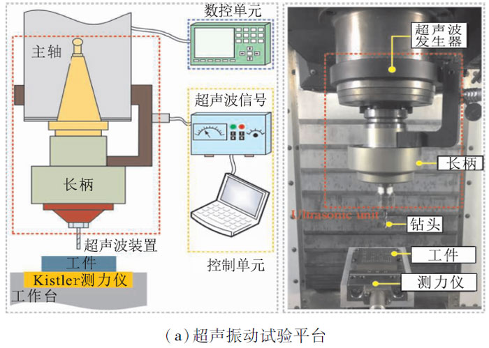 針對傳統加工工藝出口毛刺尺寸較大、去除困難等問題,國內外學者通過改變加工工藝的方法來減少或者消除毛刺,并主要開展了超聲振動、旋轉超聲輔助和低溫鉆削等鉆削鈦合金試驗研究。Zhang P.F.等通過對比傳統鉆削和超聲振動輔助鉆削試驗得出以下結論:由于超聲振動輔助鉆削能夠有效降低工件溫度,抑制材料延展性的增加,使鈦合金鉆削出口毛刺高度降低和厚度減少。趙甘霖等研究了鈦合金超聲振動鉆削工藝對于出口毛刺的影響,并通過有限元仿真分析和超聲振動鉆削試驗進行驗證(見圖4),結果表明,鈦合金超聲振動鉆削出口毛刺高度明顯低于傳統加工。Li Z.等通過旋轉超聲輔助鉆削鈦合金試驗研究發現,相比于傳統鉆削加工,旋轉超聲輔助鉆削鈦合金時,出口位置的推力和切削溫度降低,材料變形量減小,出口毛刺高度下降82.27%~89.18%。