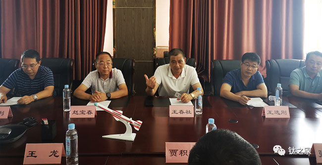 在聚能鈦業會議室,公司領導向來自寶雞鈦谷東區的領導介紹了近年來公司發展和技術創新的思路。寶雞鈦產業研究院盛利院長也向青海聚能鈦業介紹了鈦谷東區發展,他希望兩地企業加強溝通與交流,在產業和技術合作等方面多進行探討,為中國鈦工業發展走出一條新路。