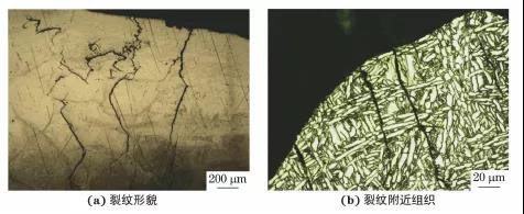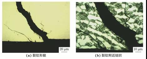 圖7 撓性軸印痕區(qū)域軸向截面的裂紋形貌及附近顯微組織