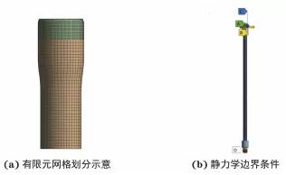 圖8 撓性軸的有限元網(wǎng)格劃分示意及靜力學(xué)邊界條件