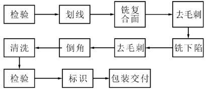 在新輔助工裝的配合下,取消加工兩側下陷時的粗銑和精銑之分,在一次裝夾狀態下利用五軸設備的 C 軸回轉功能完成對兩側下陷特征的精加工。改進后的方法不需要通過原有的兩次協調來保證對稱度,只需要通過機床 C 軸的精度來保證對稱度,排除人為誤差,保證產品一致性。合并傳統流程中的多道重復工序,最終將加工流程優化為如圖 5 所示的 11 道工序 。