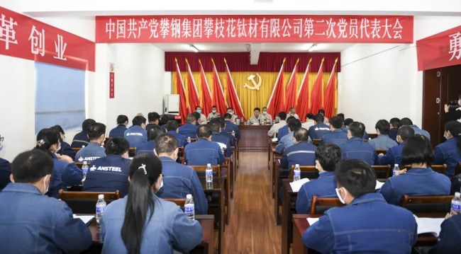 鈦材公司第二次黨代會召開,明確未來五年發展目標:高舉習近平新時代中國特色社會主義思想偉大旗幟,全面貫徹落實鞍攀兩級黨委決策部署,牢記高效綠色開發利用攀西資源的使命,瞄準建設國內最具競爭力的鈦及鈦合金企業奮斗愿景,加快建設公司治理一流、經營管理一流、技術創新一流、產品品牌一流、人才隊伍一流的新鈦材。
