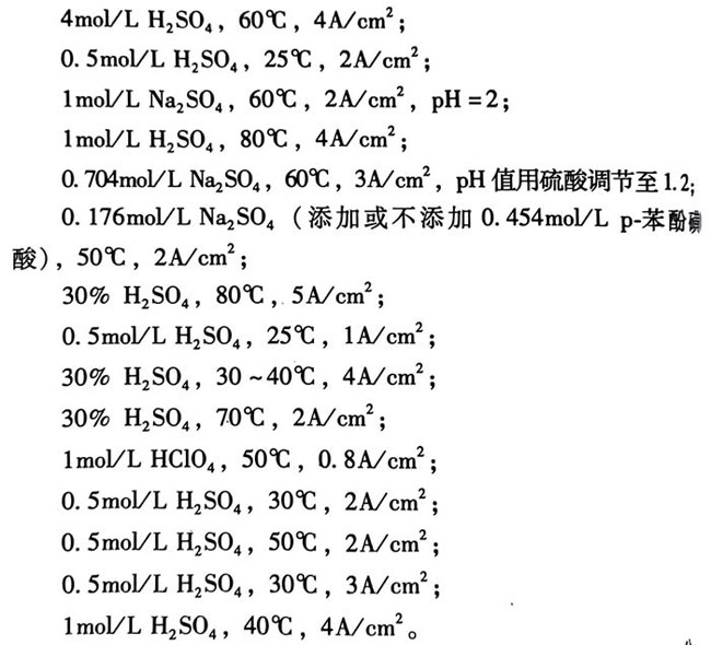 (3)電流密度:研究析氯涂層時,建議用 最好用2A/cm2;研究析氧涂層時,建議用3A/cm2、 4A/cm2、 5A/cm/2、6A/cm2,最好用4A/cm2。