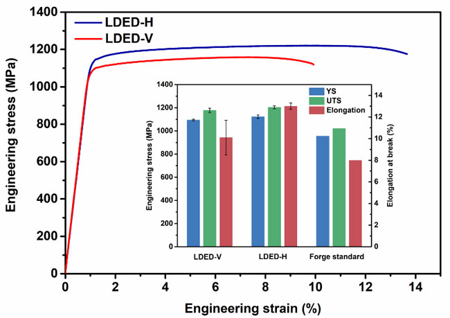 圖3 激光增材制造Ti60鈦合金的室溫拉伸性能