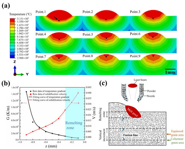本研究通過調控工藝參數實現了具有近等軸β晶粒組織的Ti60(Ti-5.7Al-4.0Sn-3.5Zr-0.4Mo-0.4Si-0.4Nb-1.0Ta-0.05C)鈦合金的激光增材制造。建立了考慮多組元影響的Ti60鈦合金的CET曲線,并結合熔池凝固過程溫度場的數值模擬,揭示了近等軸晶組織的形成機理。提出凝固溫度區間