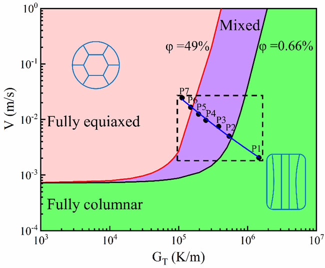 成分過冷是造成CET的主要原因。成分過冷區高度