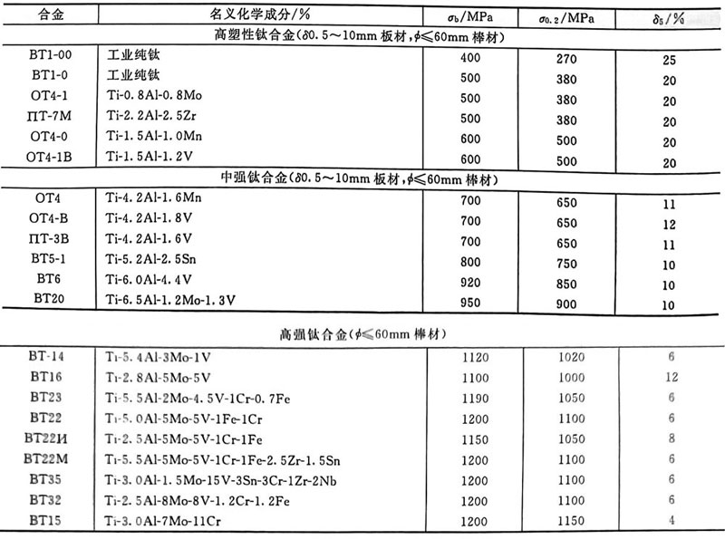 俄羅斯在飛機結構中使用的鈦合金的牌號與力學性能見表2-24所示。