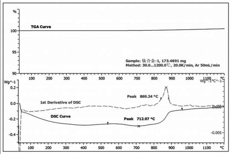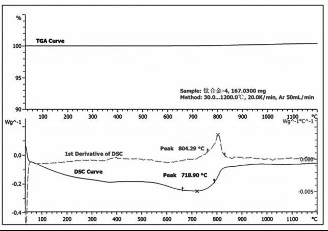 鈦合金相變溫度是指在平衡狀態下α相剛好完全轉變為β相的溫度。精確測定鈦合金的相變溫度對鈦及鈦合金加工和熱處理具有非常重要的意義,是制定最佳的材料熱加工變形參數和熱處理規范的依據。差示掃描量熱法可以記錄加熱或冷卻過程中熱流的變化,通過熱流變化分析出鈦合金的相變溫度。它是一種有效測試鈦合金相變溫度的方法,具有快速、高效、易于操作等特點。常規的DSC一般最高使用溫度在700℃左右,而近些年高靈敏度高溫DSC的發展及應用使得高溫測試鈦合金相變溫度成為可能,并使其測得的準確性得到大幅提高。