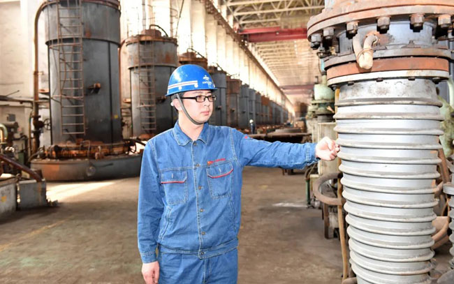 2021年,許虎誠針對還原排料過程中底排閥故障頻發的問題,總結出“還原氯化鎂排放不暢處理先進操作法”;制定并優化改進“還原罐補償環加入標準”“還原入爐保溫棉加入方法操作標準”“還原排料過程底排閥頂針行程調節標準”等多項標準,努力解決還原過程中底排閥滴漏、堵塞、卡死、頂針變形等難題。