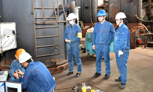 還原蒸餾作業區主要負責海綿鈦的還原及蒸餾生產,是影響海綿鈦產量及質量的關鍵環節。)要吃透海綿鈦還原蒸餾工序一整套工藝和設備,并非易事。那段時間,許虎誠白天在廠里緊跟老師傅,在現場設備和產線間穿梭;晚上回到宿舍,就拿著從老師傅那里借來的《鎂熱法海綿鈦生產》《鈦冶金及海綿鈦發展》《海綿鈦冶金過程工藝及設備計算》等書籍,認真研讀并做好筆記。功夫不負有心人,通過理論學習和實踐積累,他成長為作業區的青年技術骨干。