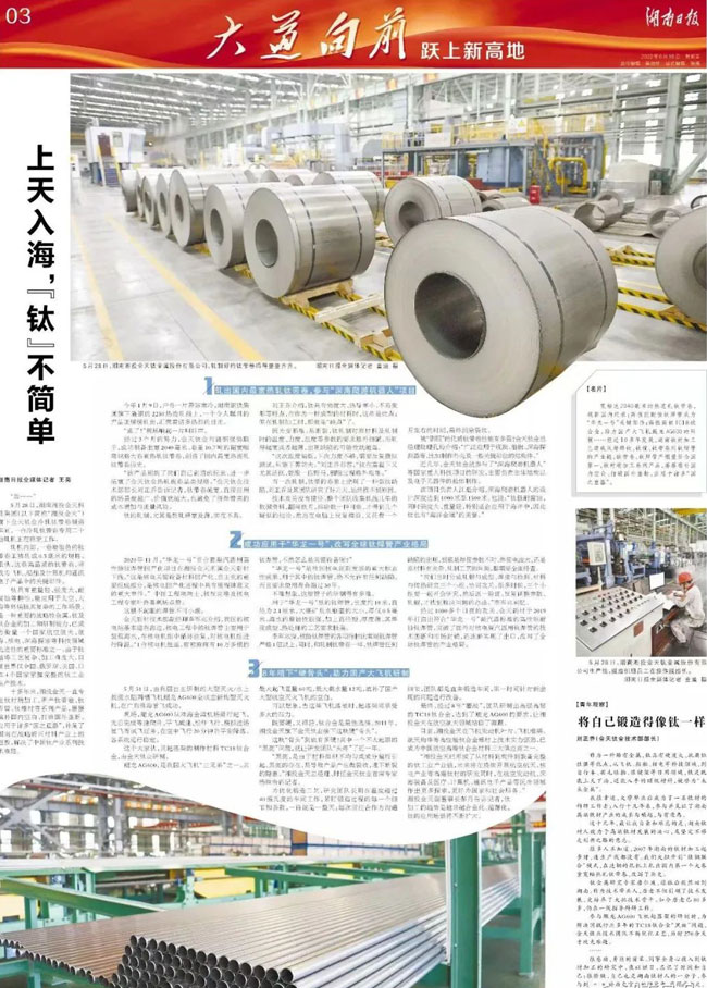 十多年來,湘投金天一直專注鈦材精加工,所產鈦帶卷、鈦焊管、鈦棒材等系列產品,屢屢填補國內空白、打破國外壟斷,應用于諸多“國之重器”,補足了湖南在戰略新興材料產業上的短板,解決了中國鈦產業系列技術難題。