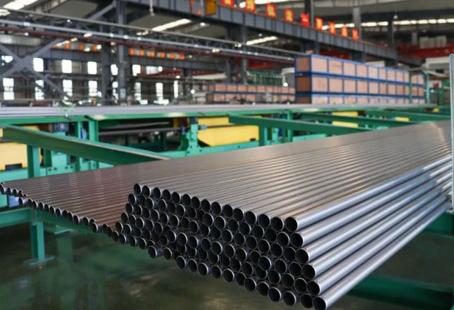 湘投金天新材料有限公司高性能鈦焊管生產車間擺放的管材。李博斌 攝