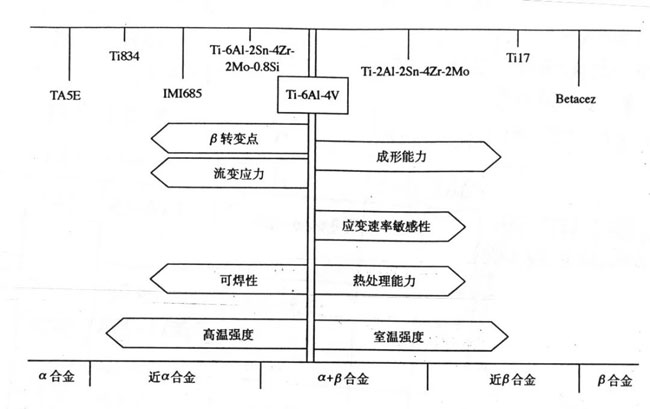 鈦合金的類型與性能有較好的對(duì)應(yīng)關(guān)系,如圖1所示。例如,α鈦合金具有較高的耐熱性和可焊性,而β鈦合金具有較高的室溫強(qiáng)度和冷成形性,α+β兩相鈦合金則具有較好的綜合性能。