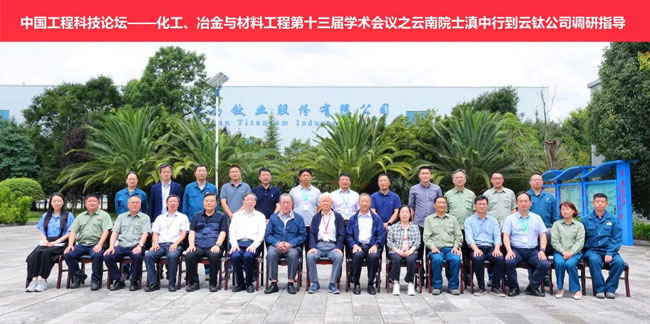 8月8日上午,“院士滇中行”走進云南鈦業股份有限公司。中國工程院院士胡永康、錢鋒、王海舟、吳鋒、周玉,以及相關專家學者到云南鈦業進行實地參觀指導,為企業發展把脈開方、建言獻策。中國寶武工程科學家儲雙杰,寶武鈦業首席專家史亞鳴,云南鈦業公司領導陪同參觀。