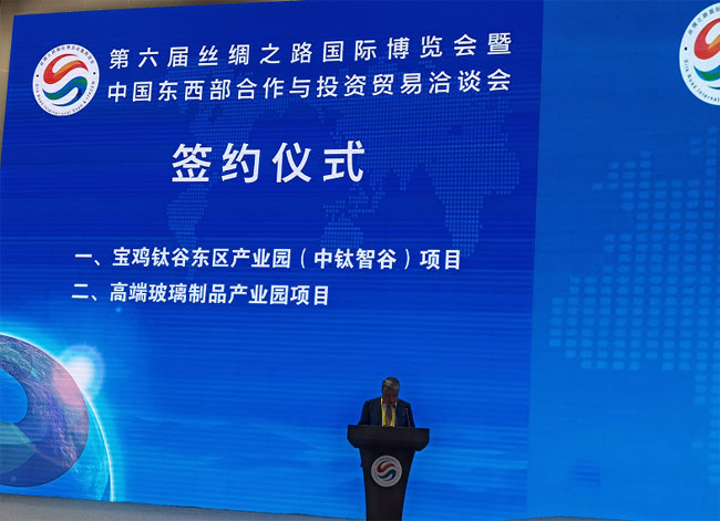 8月14日上午,從“第六屆絲綢之路國際博覽會暨中國東西部合作與投資貿易洽談會”上傳來喜訊,寶雞市眉縣人民政府與浙江萬企動力科技有限公司就寶雞鈦谷東區產業園(中鈦智谷)項目簽署了合作協議,眉縣縣委書記劉志生、浙江萬企動力陳貴福分別代表雙方簽約,成為會場中的一大亮點。