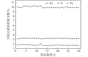 圖3 Ti-1023鈦合金鑄錠不同位置的合金元素成分圖