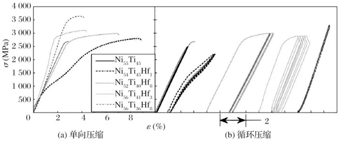 圖4 NiTiHf合金相對于基準合金的壓縮特性的變化