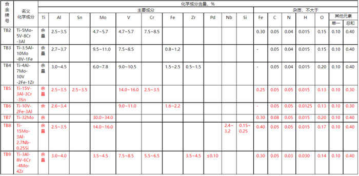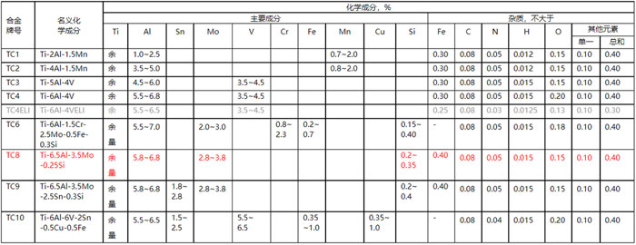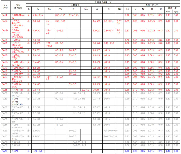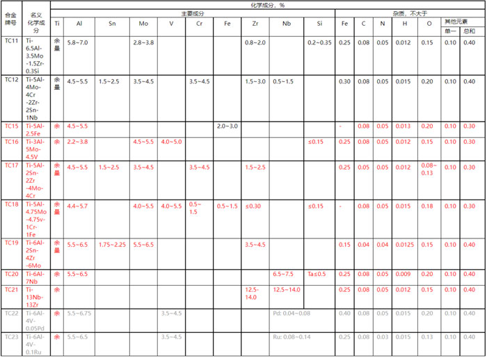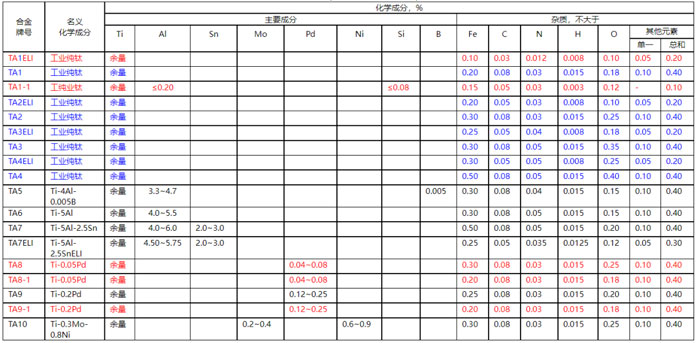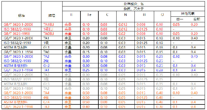 最后附上國外標準及國家標準新老鈦牌號和化學成分對比