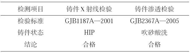 研制的鑄件經最終X射線和熒光滲透檢驗,質量符合產品技術要求,見表3,表面質量優(yōu)于同類采用機加石墨型鑄造的鑄件。