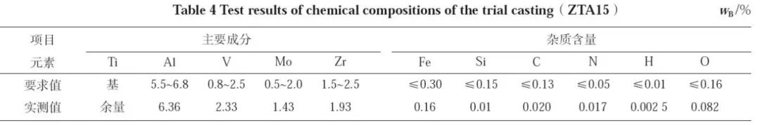 表4 試制鑄件(ZTA15)化學成分檢測結果