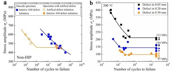 圖4.缺陷引入形式和缺陷尺寸對疲勞性能的影響。
