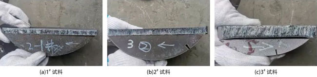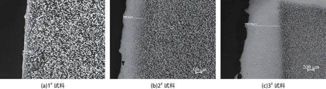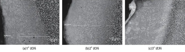 圖3 3000W 功率、O2 輔助條件下激光切割不同厚度試料熱影響層形貌