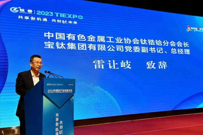 雷讓岐在致辭中首先代表中國有色金屬工業協會鈦鋯鉿分會,以及會長單位寶鈦集團,向出席高峰論壇的領導嘉賓表示熱烈歡迎。他指出,鈦產業高峰論壇作為業內交流合作,連接政、產、學、研、用,共同推動產業高質量發展的窗口和平臺,已經發展成為國內最專業、影響范圍最大的鈦產業綜合性盛會。本屆論壇在中國有色金屬工業協會、寶雞市政府的大力支持下,更是大咖云集,國內外涉鈦協會、企業齊聚,將以更加專業化、國際化的視角,帶給我們更多新的思考和探索。