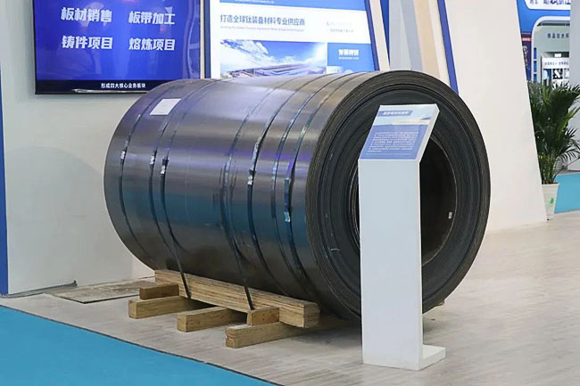 現(xiàn)場展出的超寬幅純鈦卷帶,是金山鈦業(yè)新增的3600KW EB爐出品的板坯軋制而成,該EB爐配套了國內(nèi)首套寬幅結(jié)晶器,可用于生產(chǎn)超寬幅熱軋卷帶及中厚板,填補了國內(nèi)鈦超寬幅熱軋卷帶的空白。