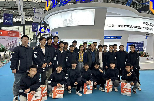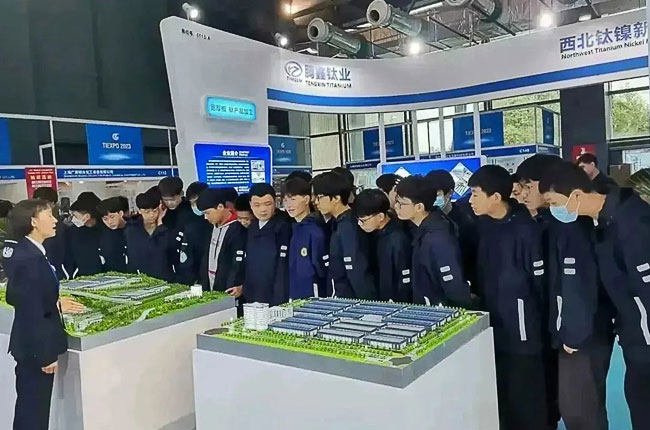 在參展期間,各班學生列隊跟隨現場工作人員,認真聽取專業技術人員對各展位的鈦材料、鈦產品以及各種有色金屬材料的詳細介紹。讓學生們親眼目睹了鈦金屬的不同形態以及各種板材、型材等。對鈦金屬材料的性質、加工方法、新型工藝以及在航天、軍工、民用方面的綜合應用有了新的認識。同時,了解了自己所學專業所涉及的職業領域,感受到了現代企業的文化精髓和先進制造業的發展理念,進一步激發了學生學習熱情,增強了學生“技能強國、創新有我”的堅定理想信念。