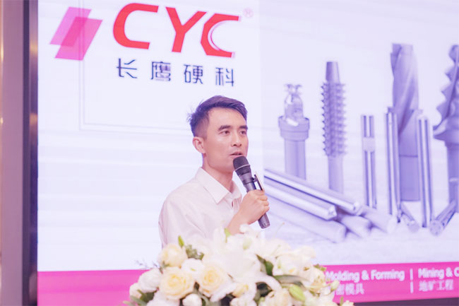 長鷹硬科董事長黃啟君向來賓致以熱烈歡迎和衷心感謝。黃總提到:科技發(fā)展,一日千里。被加工材料迅速迭代,加工工藝不斷提升。7系鋁、不銹鋼、高硬模具鋼,始終與客戶一同成長,適時(shí)推出新的針對(duì)性刀具材料,因而被國內(nèi)外優(yōu)秀的刀具企業(yè)所認(rèn)可。近年來,鈦合金成為3C的主流,長鷹在三年前就立項(xiàng)鈦合金刀具棒料的研發(fā)。今天發(fā)布的正是三年研發(fā)的一個(gè)成果。并表示,長鷹硬科將守正篤實(shí),持續(xù)強(qiáng)化創(chuàng)新引領(lǐng),堅(jiān)持技術(shù)創(chuàng)新,聚焦產(chǎn)品創(chuàng)新,盯緊客戶需求,進(jìn)一步豐富公司產(chǎn)品系列,四大研發(fā)中心蓄力協(xié)同創(chuàng)新,拓展發(fā)展空間。