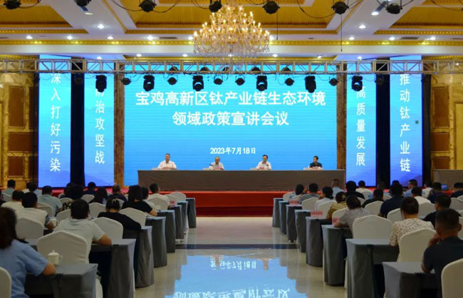 7月18日,市生態環境局聯合市經濟合作局走進寶雞高新區,對轄區鈦產業鏈企業開展生態環境領域政策宣講。幫助企業充分用好生態環境政策,推動生態環境領域營商環境不斷優化。市生態環境局黨組成員、正處級環保督察專員張遠聞參加會議并講話。