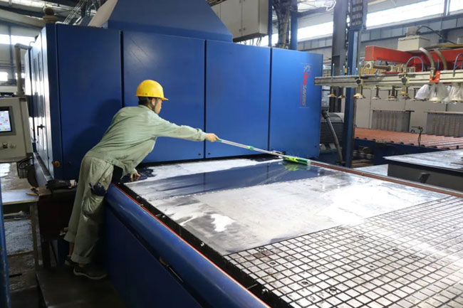 鈦帶公司提前制定技改計劃,配合生產進度有序落實,加強審查及施工過程監管,強化屬地管理責任。完成20輥軋機軋制油過濾系統一級和二級系統過濾罐濾芯的更換工作,保證了軋制油的過濾精度,為帶材表面質量提供了必要保障。更換含酸廢水處理系統壓濾機,并對鋼結構平臺整體抬升,方便清運車輛承接廢渣,減輕工人的勞動強度。完成水泵房脫鹽水系統擴能改造,將系統產水能力由8t/h提高到12t/h,效率提高了50%,滿足了帶箔材建設項目用水需求。現場更換并調試新購置的嵌入式控制器,實現了對軋制測量過程的高速控制。
