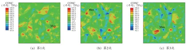 圖8 3次隨機取向條件下的氫濃度分布云圖