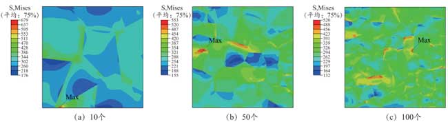 圖10 不同晶粒數(shù)目下的Mises應力云圖