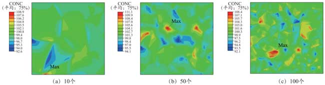 圖11 不同晶粒數(shù)目下的氫濃度云圖