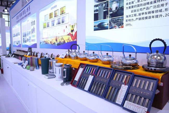 在先進制造業館,云南鈦業展出了包括大口徑鈦及鈦合金無縫管、高耐蝕高強度鈦合金卷板、鈦合金緊固件及異形管件、鈦頭盔、裝甲隨車工具等產品,以及真空杯、茶葉罐、筷子、泡壺等鈦制品,受到眾多來訪領導、嘉賓和參觀人員的駐足關注和詳細咨詢,讓大家近距離認識和了解鈦,感受到鈦的神奇與魅力。