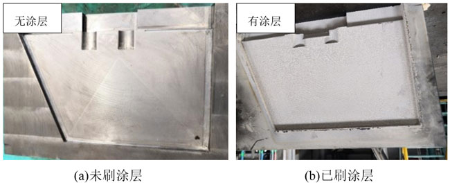 根據制定好的試驗方案,按照涂層刷涂工藝規程的操作要求,對試驗用的金屬模具型腔表面進行涂料刷涂作業,刷涂形成的涂層滿足工藝規定的厚度后,轉移至干燥通風處晾干。