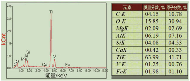 圖6 鈦合金鑄件的表面能譜分析