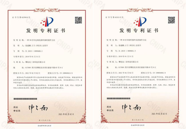 鈦音·3D打印鈦合金助聽(tīng)器采用“3D掃描+3D建模+3D打印”的技術(shù)工藝,通過(guò)公司自研的SLM選區(qū)激光熔融金屬3D打印機(jī)制作鈦合金外殼,量耳定制,擁有0.15mm的極致壁厚,佩戴更隱形,長(zhǎng)時(shí)間佩戴更舒適,無(wú)需佩戴適應(yīng)周期;醫(yī)用級(jí)鈦合金材質(zhì),安全無(wú)毒性,無(wú)致敏性,無(wú)皮膚刺激性,且較傳統(tǒng)樹(shù)脂材質(zhì)的強(qiáng)韌度提升了十多倍,聲音更保真;12K超寬頻響范圍,16-20通道有效調(diào)節(jié),48-64頻段精準(zhǔn)調(diào)制,第三代反饋抑制技術(shù),可實(shí)現(xiàn)360度全域聆聽(tīng)體驗(yàn);在國(guó)內(nèi)多個(gè)城市提供專業(yè)的驗(yàn)配、定制服務(wù)和完善的售后服務(wù)。目前,鈦音·3D打印鈦合金耳內(nèi)式助聽(tīng)器已取得兩項(xiàng)國(guó)家發(fā)明專利,通過(guò)國(guó)家級(jí)校準(zhǔn)驗(yàn)證,經(jīng)測(cè)試,產(chǎn)品性能達(dá)到國(guó)際先進(jìn)水平。