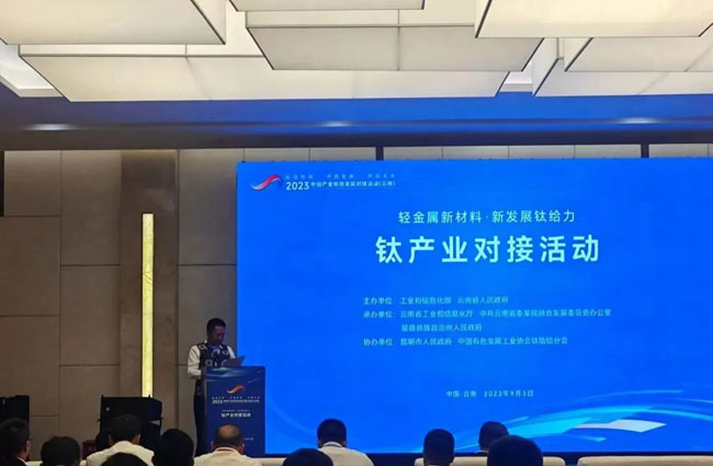 2023年9月3日下午,由工業和信息化部、云南省人民政府主辦,云南省工業和信息化廳、楚雄州人民政府聯合承辦的2023中國產業轉移發展對接活動(云南)鈦產業對接活動在昆明滇池國際會展中心舉行。