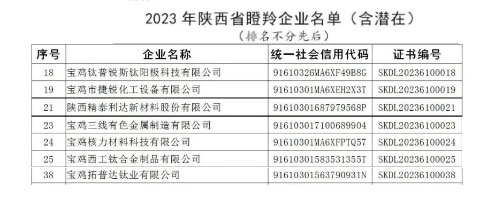 2023年10月12日,陜西省科學技術(shù)廳公布了《2023年陜西省瞪羚企業(yè)名單》,經(jīng)過嚴密的征集遴選程序,寶雞鈦業(yè)協(xié)會7家會員單位憑借技術(shù)創(chuàng)新實力和發(fā)展?jié)摿Γ晒θ脒x2023年陜西省瞪羚企業(yè)!
