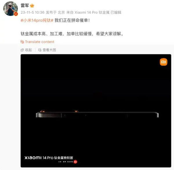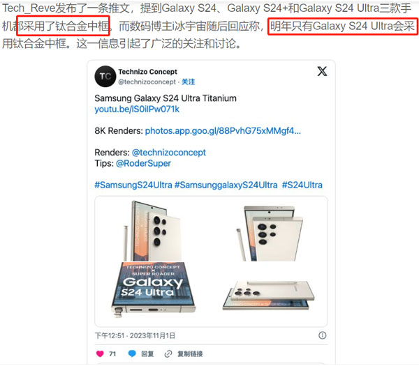 目前看鈦合金已成消費電子高端機的新趨勢,小米14也上了鈦合金版,而明年三星也稱將大規模使用