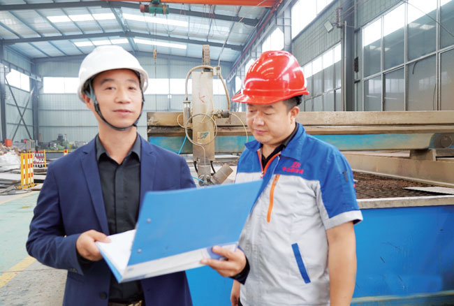 齊寶明在生產一線與工人交流